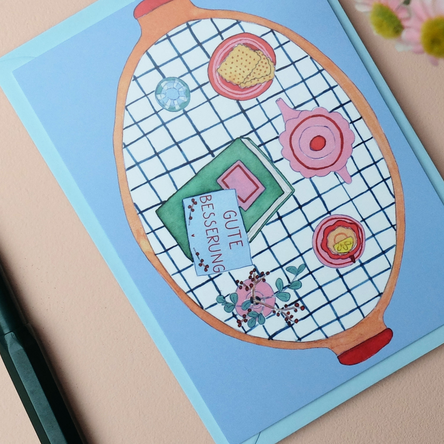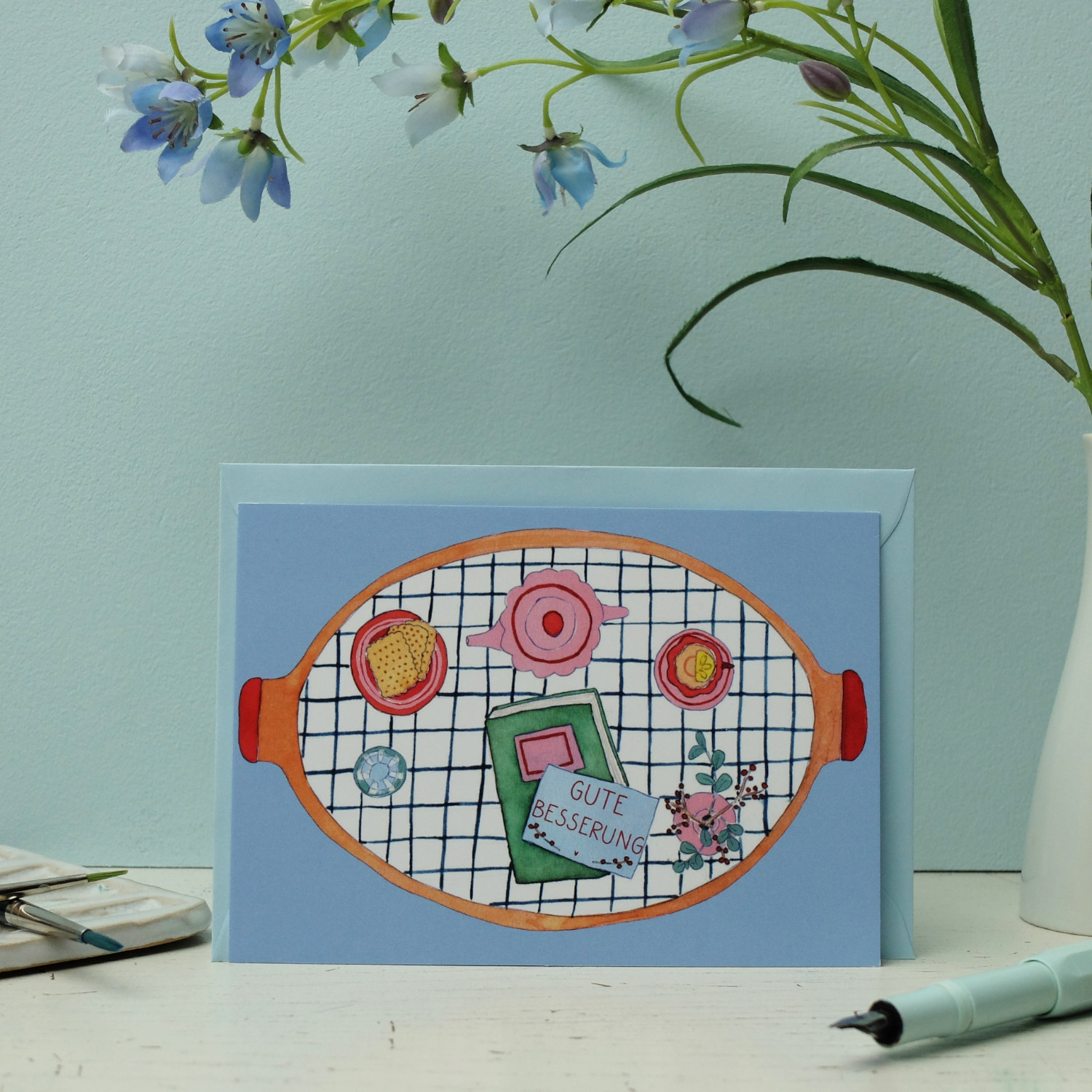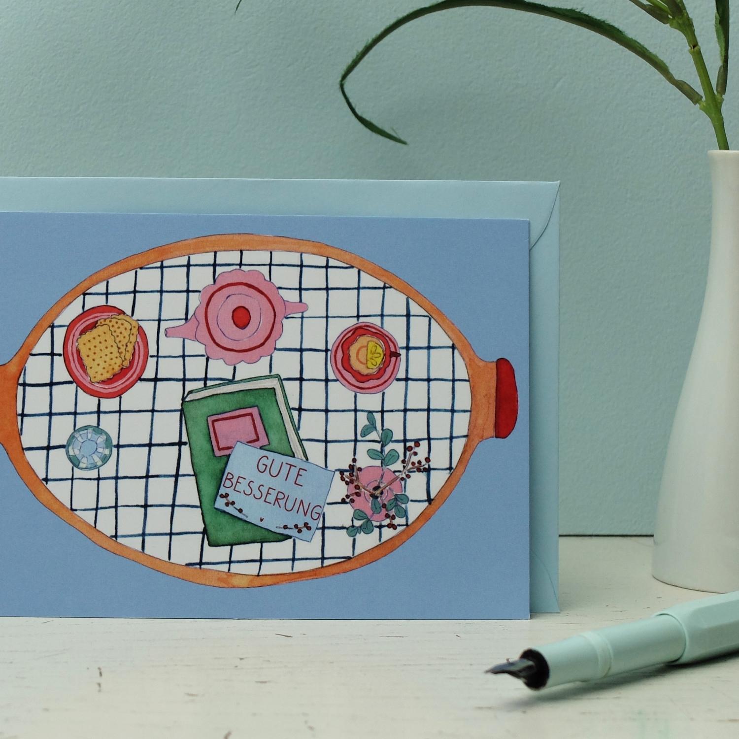 Postkarte Gute Besserung Tablett