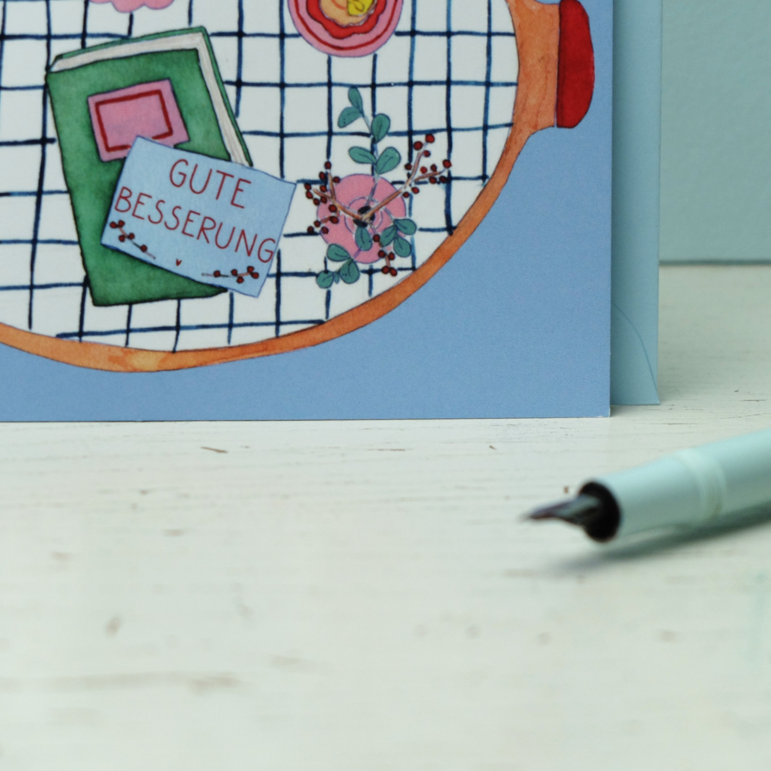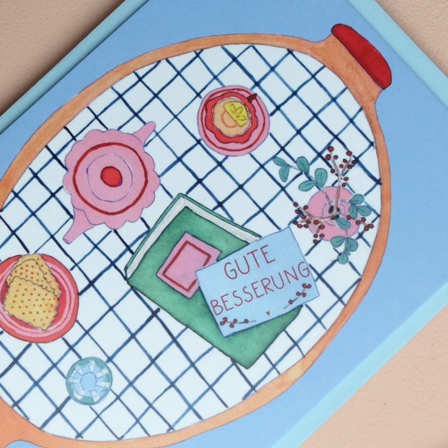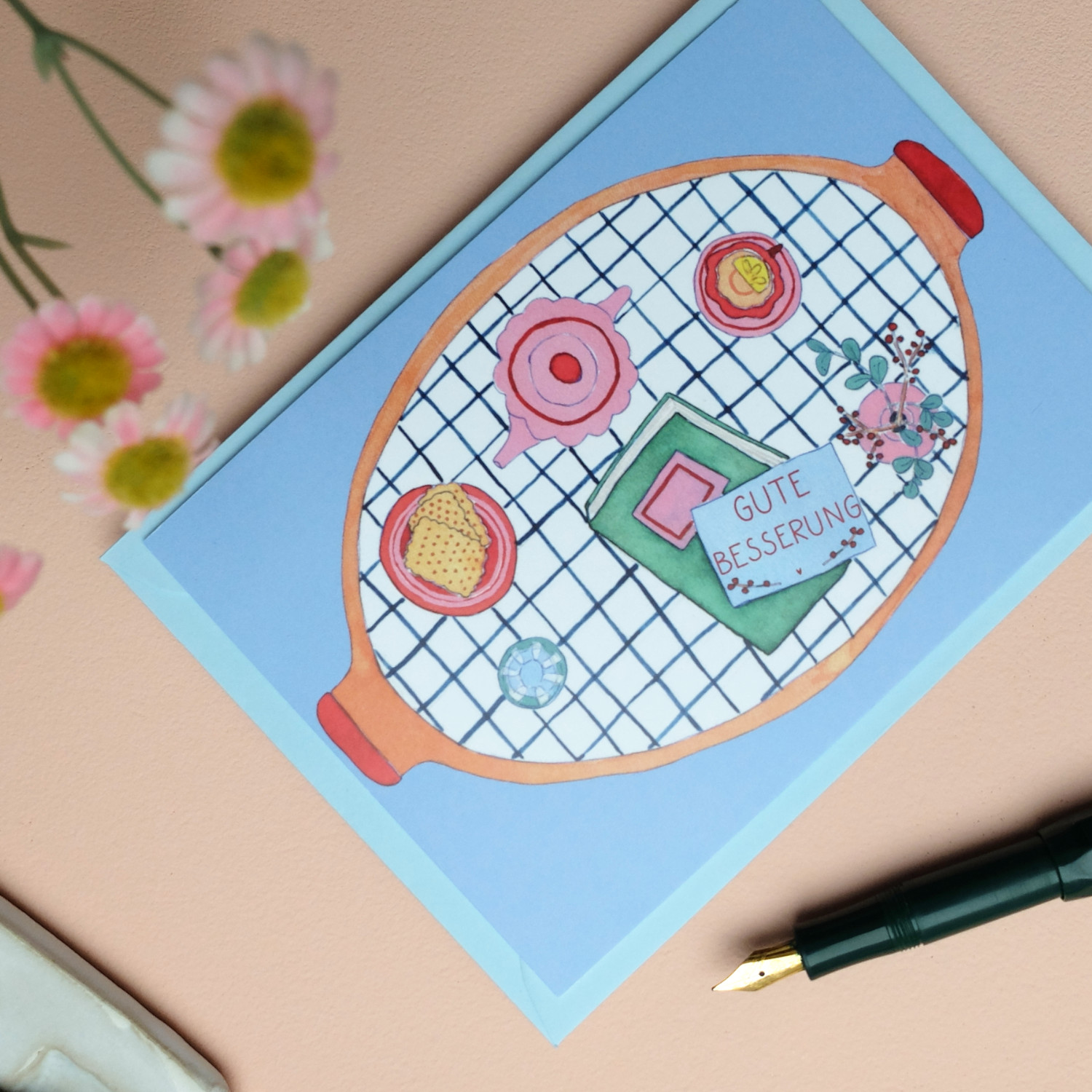 Postkarte Gute Besserung Tablett